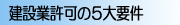 建設業許可を取得するためには、次の5つの要件を全て満たしていなければなりません。 |